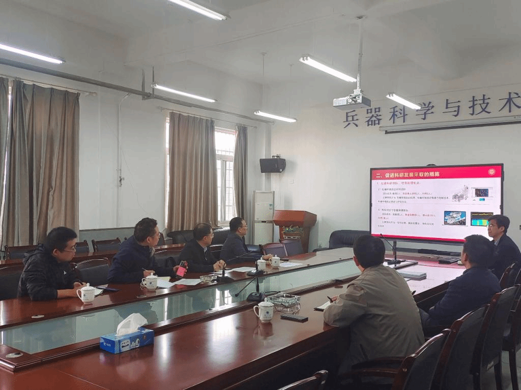 此次调研的目的是对兵器学院科研工作量完成情况进行摸底。院长郭永春向与会领导汇报了兵器学院各项工作的进展情况,重点从项目、论文、专利、国基金、成果转化、后期规划等方面对学院的科研工作进行了详细汇报。