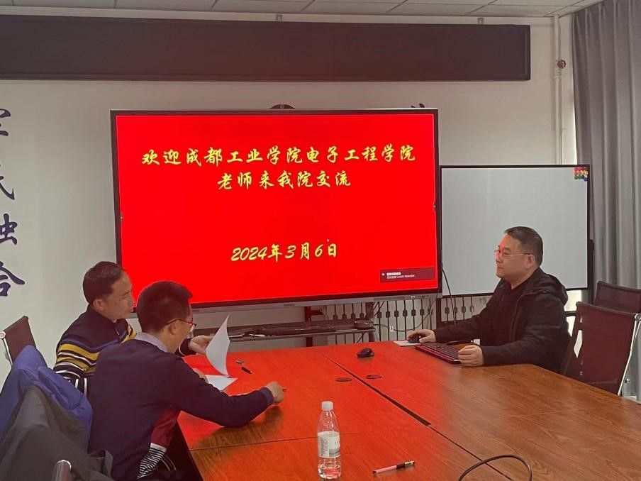 2024年3月6日,成都工业学院电子工程学院电子信息专业教研室主任谢成诚副教授,军事理论教研室主任郑志林老师一行两人来PA视讯进行交流。PA视讯武器系统与工程系副主任陈丁老师及部分研究生代表参加交流访问。