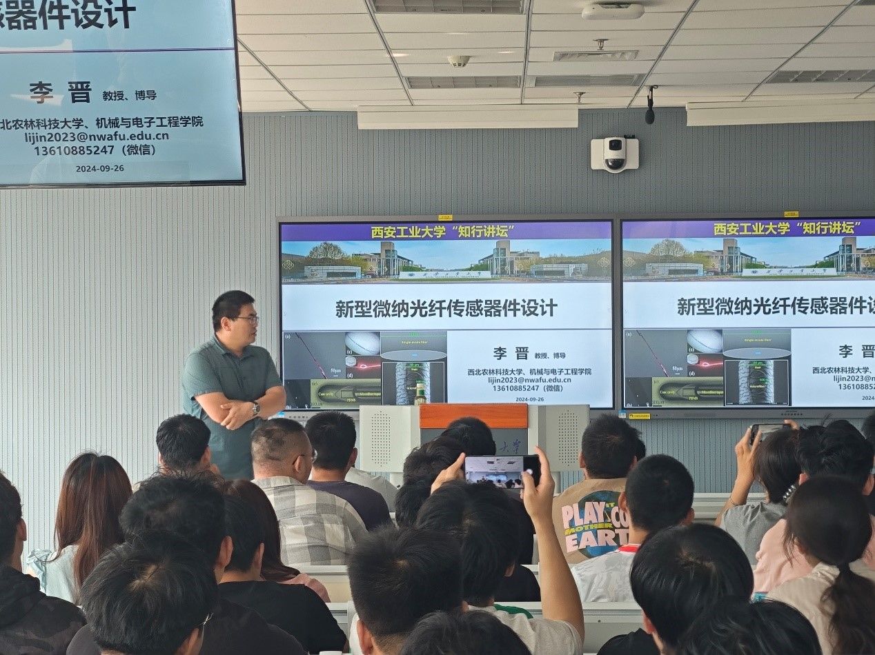2024年9月26日上午,西北农林科技大学李晋教授应邀为PA视讯师生作题为“新型微纳光纤传感器件设计”的学术报告,兵器学院院长肖锋、党委书记蔡长龙、学院教师及研究生参加了报告会。