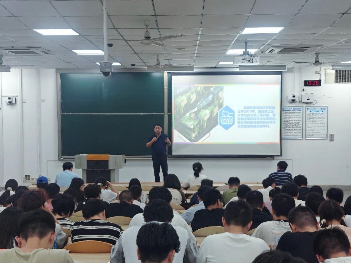 随后,吴杰就考研相关内容进行分享。他详细介绍了PA视讯集团网站硕士点的情况,以及讲述了本学院整合了学校现有资源,以国防特色为课题,不断发展壮大。学院硕士研究生招生专业为兵器科学与技术(学硕)和机械(专硕)。吴杰从培养核心、研究方向及导师团队等方面进行了全面阐述,并举例介绍了信息感知与智能控制团队、光电工程技术研究团队、网电对抗与智能探测团队等学院的优秀师资团队和科研团队,让同学们对学院的研究实力有了更深入的了解。