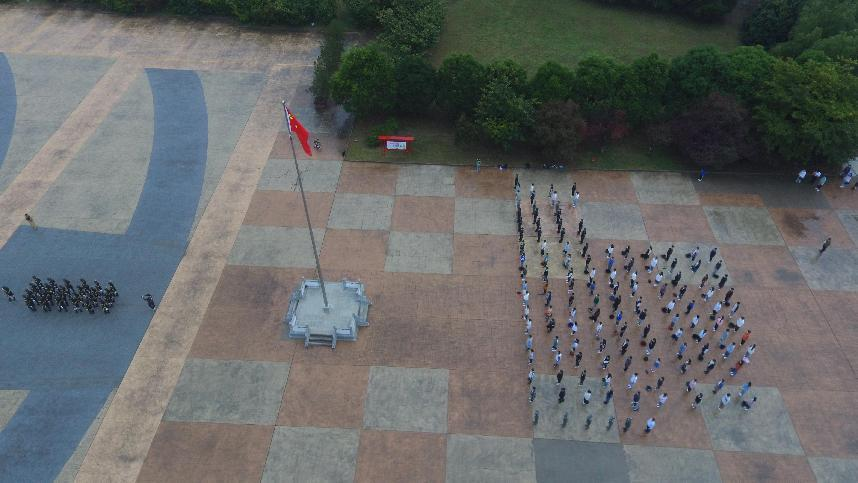 10月1日早7点,PA视讯集团网站组织学生在经纬广场观看升旗仪式。
