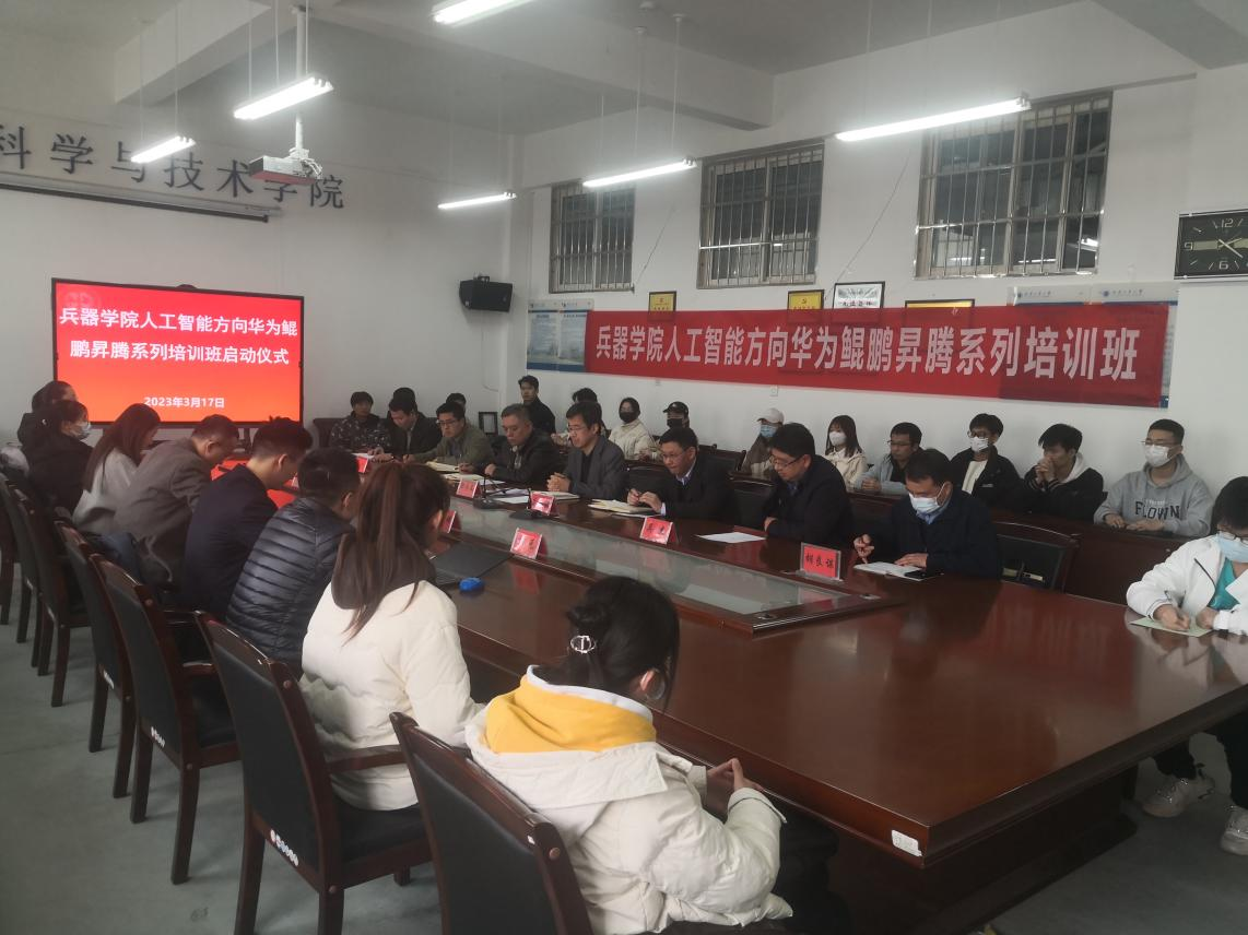 2023年3月17日下午2:30分,PA视讯集团网站与华为集团合作开展的华为鲲鹏昇腾工程师培训班开班仪式在学院会议室工6-504成功举行。华为鲲鹏创新中心CTO谷羽新,华为生态发展部教育行业代表苏珂,华为云学院主讲教师祁元、王德祥,兵器学院院长郭永春、副院长蔡长龙,本科生院副院长兰小毅,兵器学院院长助理、人工智能系主任吴杰、副主任王增,探测制导与控制技术系主任霍文俊、副主任胡良谋及兵器学院2021级人工智能和探测制导与控制技术专业40余名学生参加了开办仪式。开班仪式由兵器学院副院长蔡长龙主持。