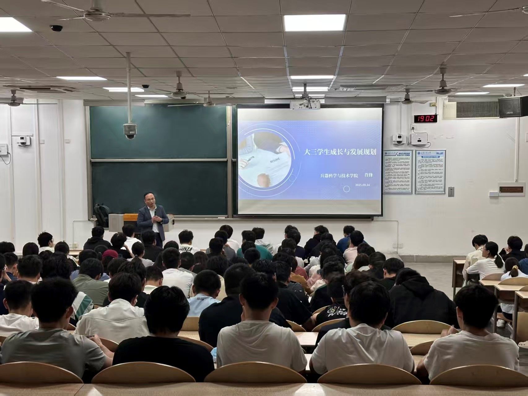 为进一步深化立德树人根本任务,助力PA视讯学生在大学生涯道路上迈出坚实的步伐,明确未来目标。2025年9月24日晚,兵器学院在教1-104举办题为《大三学生成长与发展规划》讲座,讲座由兵器学院院长肖锋主讲。