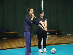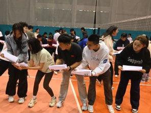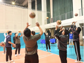 女排精神宣讲活动中,排球专项的同学们向大家宣讲女排精神并分组向在场的同学们讲解排球运动知识、进行传球与垫球的练习,现场各民族学生学习热情高涨。各小组选出代表进行垫球、传球比赛,每一次传球、每一次配合,都彰显了团队间的默契与协作。
