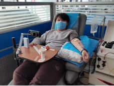 在老师的带领下,参与无偿献血的同学们准时集合,跟随校车一同前往天津市献血中心。抵达献血中心后,同学们在工作人员的指引下有序排队依次体检和采血。